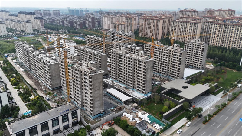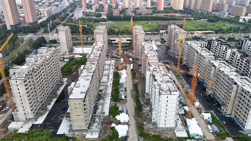 所有楼栋室内地热施工全部完成,车库顶板虹吸排水铺设完成,园区回填土施工。